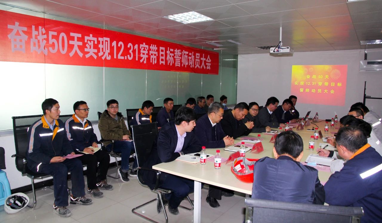 在新增冷轧机项目距12月31日投产目标倒计时50天之际,11月10日上午,中孚高精铝材公司召开了“奋战50天,实现穿带目标”誓师动员大会,全面吹响如期完成项目建设目标的冲锋号。中孚高精铝材公司以及中色科技、监理单位、土建施工单位等相关负责人参加了会议。
