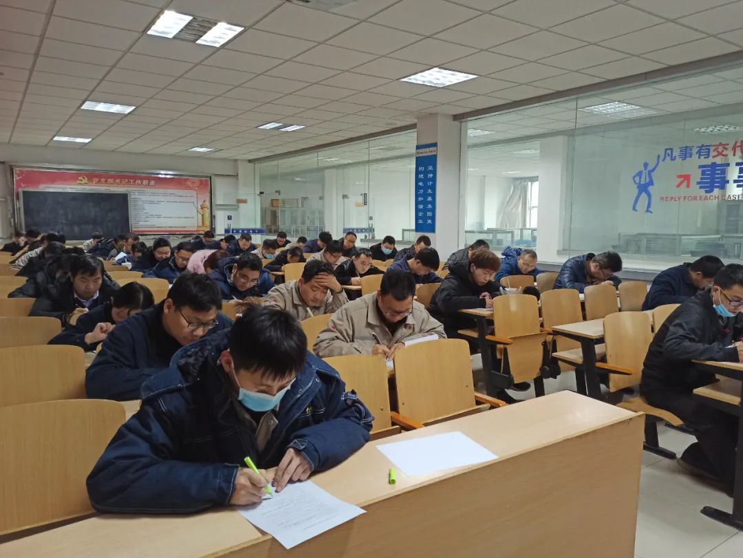 为检验运行人员的技能水平,运行部精心准备,提前制定方案,认真拟定考题。本次考评由闭卷笔试和实操测评两种形式组成,考题编制紧贴运行岗位职责,切实联系操作调整,涵盖设备参数及原理、运行调整、异常分析及应对措施等内容,旨在以考试促进员工业务技能进一步提升。