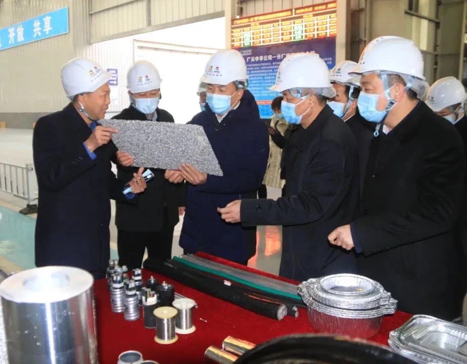 期间,于立军部长一行深入广元中孚生产现场实地察看,并饶有兴致地观看了铝产品样品展台,仔细了解了企业的生产工艺和设备运行情况,关切地询问了企业的经营效益、市场成本变化以及产品应用领域。张松江向于立军部长一行详细汇报了企业的相关情况,他说,广元中孚在建设过程中认真优化设计布局,致力节能减排,注重环保投入,取得了较好的经济效益和社会效益。2021年,广元中孚积极抢抓市场机遇,加强内部管理多产铝产好铝,实现高效盈利。于立军部长对广元中孚的管理水平和经营业绩给予了高度评价。