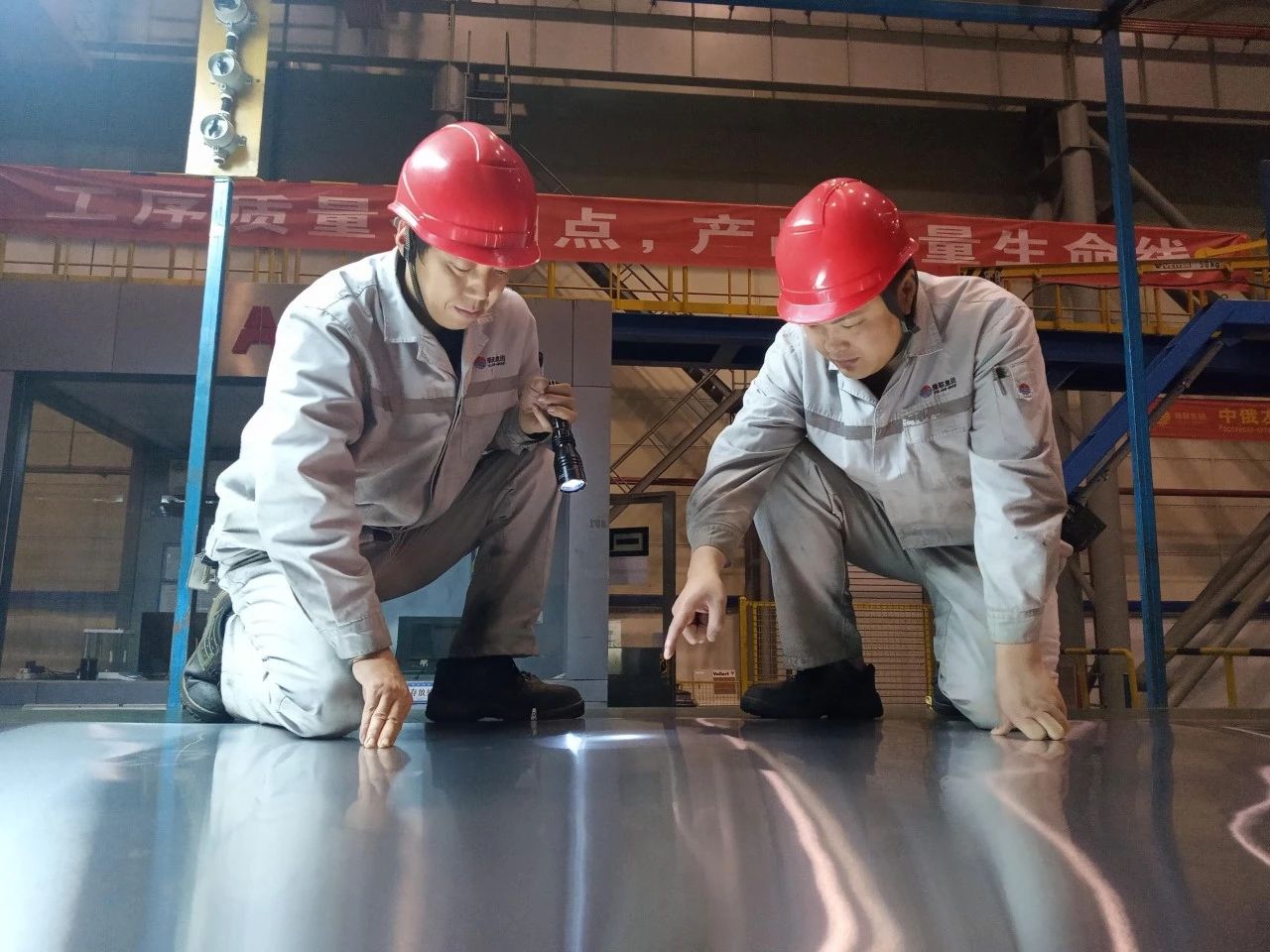 每天接班时,熔铸厂运行值的班前会都有一套“规定动作”——整理劳保穿戴、端正坐姿仪容、喊响班组口号、交流分享工作,大家以饱满的热情开始一天的工作。而此时,热轧厂立推炉操作工趁着交接班的间隙,进行“一点课”培训。在另一个厂房内,冷轧厂的机台主操正忙着与质量工程师探讨,他们深知“精益立品质,质量铸口碑”的重要性。