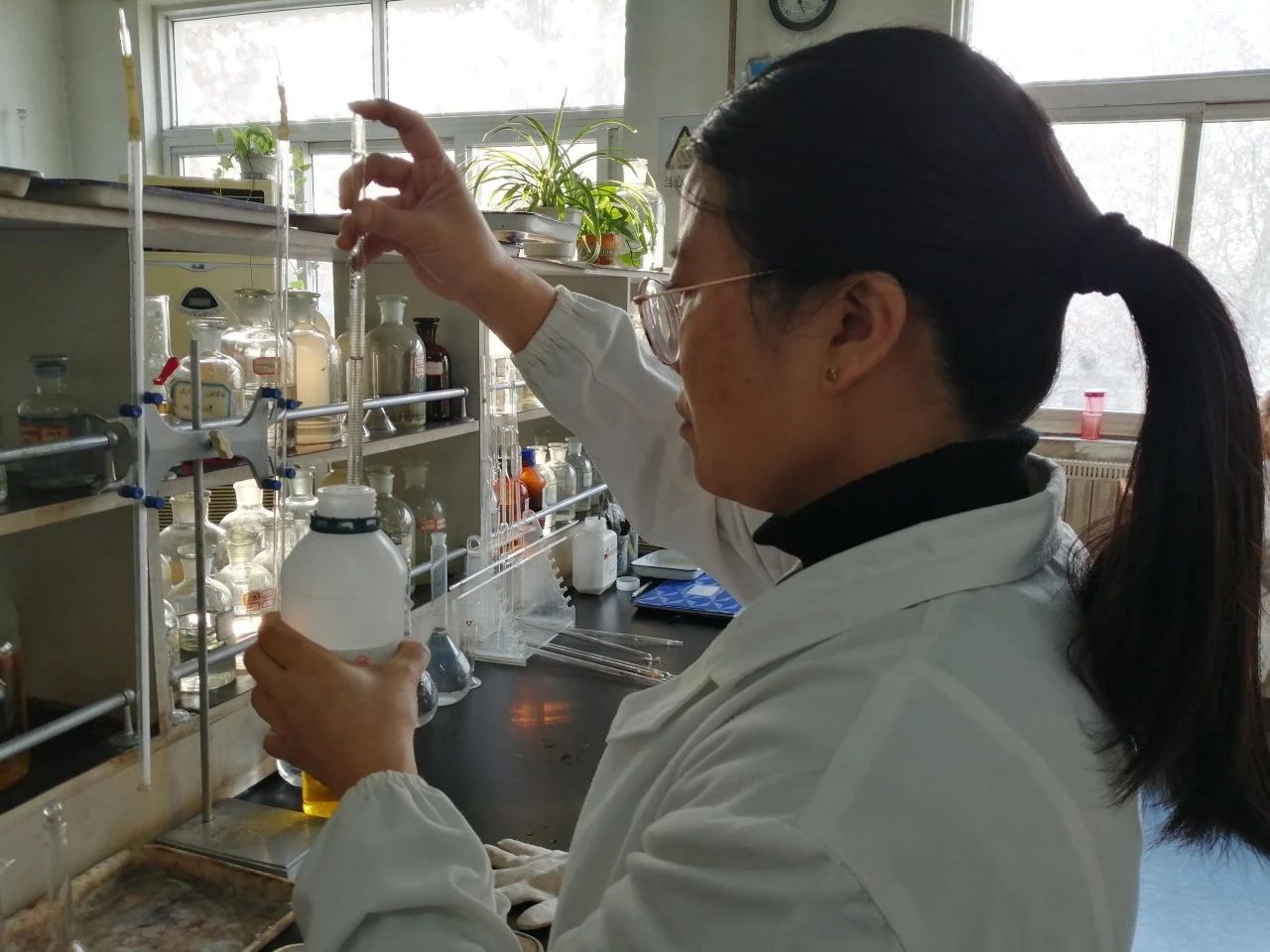 中孚技术中心:化学分析岗员工进行铝钛硼丝中硼元素分析测定